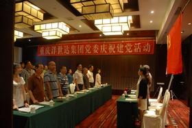 7月3日下午,洋世達集團公司黨委“紀念建黨94周年暨創(chuàng)先爭優(yōu)總結表彰大會”在金佛山天星假日酒店會議室隆重召開。本次會議由黨委組織委員杜虹同志主持,全體黨員及入黨積極分子約40人參加了活動。慶祝大會在莊嚴的國際歌聲中拉開了序幕,集團公司黨委表彰了2014-2015年度先進黨支部、優(yōu)秀黨務工作者以及優(yōu)秀共產(chǎn)黨員,并號召大家向受到表彰的優(yōu)秀黨員同志學習,努力提升自我,爭做優(yōu)秀黨員,接著全體黨員在黨旗下重溫入黨誓詞,最后,譚邦強書記作了總結講話。