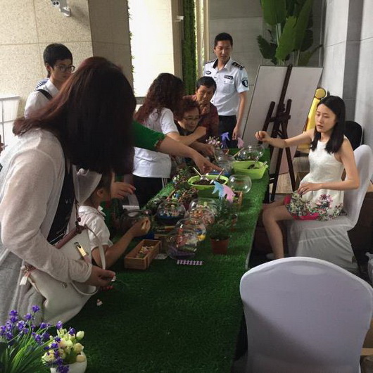 大人紛紛拿起青翠芬芳的粽葉,亮絕活兒。拿兩片油亮的粽葉,在手上圍成一個小圓錐,再把泡好的糯米慢慢灌入,然后把粽葉將糯米裹好,最后再用莖葉仔仔細細包扎好,一個可愛又美味的粽子就誕生了!另一邊,天空森林城市也為小孩準備了節日禮物。有的在工作人員的指導下,親手打造一個萌萌噠多肉植物盆栽景觀;有的則拿著“小丑”送的氣球,玩得不亦樂乎!