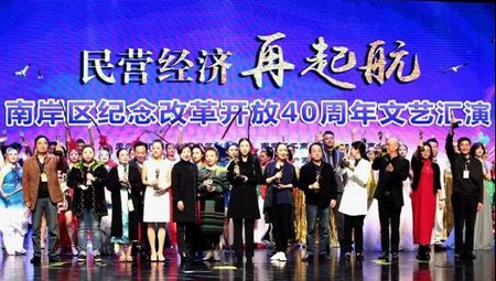 2018年10月30日,由南岸區委統戰部、南岸區工商業聯合會(總商會)主辦,南岸區民營企業家協會承辦的紀念改革開放40周年“民營經濟再起航”文藝匯演在重慶施光南大劇院隆重舉行。