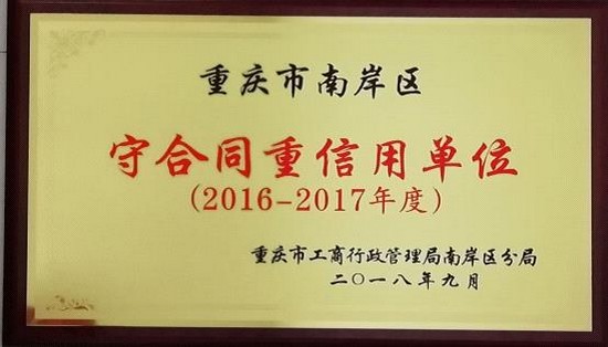 重慶洋世達房地產開發有限公司榮獲南岸區2016-2017年度守合同重信用單位”稱號