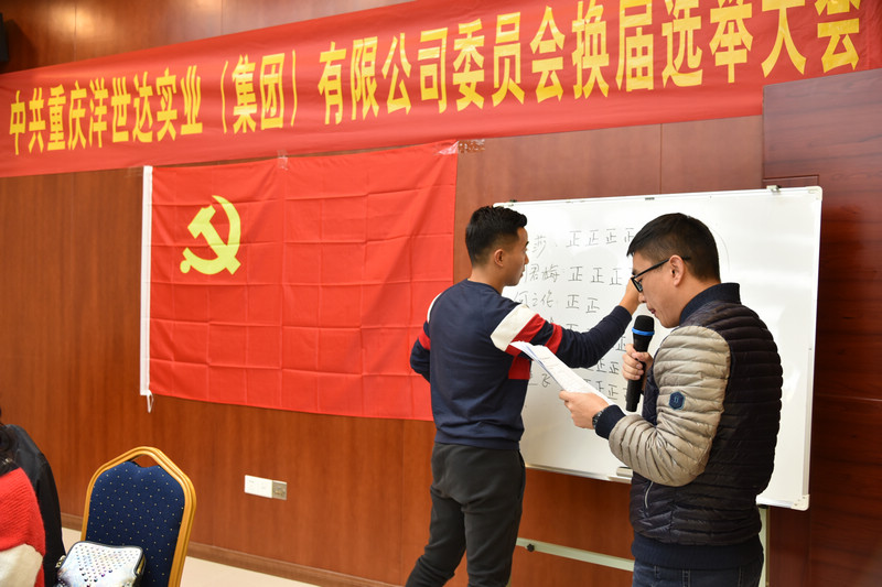 洋世達集團黨委于2019年11月8日,在集團公司一樓會議室召開全體黨員大會。會議由黨委副書記董進飛同志主持,集團公司董事長楊勇同志及南坪鎮黨政辦祝芳芳同志蒞臨大會并發言。換屆選舉大會按照上級黨委的要求,由上屆黨委書記何長君同志做工作報告,采用無記名投票的方式進行選舉,產生了新一屆黨委委員。本屆黨委委員由趙全林、董進飛、朱莎、楊鵬、劉君梅五位同志組成。