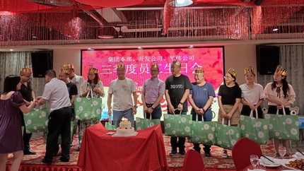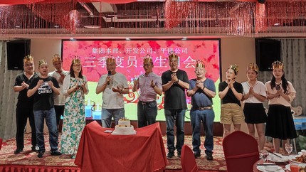 2021年7月15日下午,集團(tuán)本部、房產(chǎn)公司、平偉公司的全體同仁歡聚一堂,為三季度過(guò)生日的12位同事,共同慶祝生日。