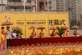 本屆體育節以“迎奧運?洋世達10年”為主題。來自洋世達集團各樓盤的小區業主、洋世達集團的領導和員工,以及各界來賓共3000多人參加了開幕式。重慶市體育局領導譚紅、杜平,南岸區副區長楊才明、區體育局局長徐華維等領導參加了開幕式。在隆重的入場式上,由洋世達集團企業旗、體育節會旗、彩旗隊、全體運動員和裁判員近3000人組成的18個方隊,以激情奔放、整齊矯健的步伐邁步入場。在莊嚴的升國旗、奏國歌儀式后,集團公司常務副總裁郭坤倫致歡迎辭,重慶市體育局領導發表了熱情洋溢的講話。在運動員、裁判員代表宣誓后,南岸區副區長楊才明宣布本屆體育節開幕。隨后,進了精彩的文藝節目表演。