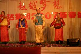 精彩的文藝匯演于下午2:30在金色大廳準(zhǔn)時開始。一陣熱鬧的大鼓后,一群可愛的孩子快樂登場給大家拜大年。集團公司董事長、總裁楊勇發(fā)表了熱情洋溢的新年賀辭,并宣布文藝匯演正式開始。在16個文藝節(jié)目表演過程中,各個公司都拿出了看家本領(lǐng),表演了自編自演、精心排練的舞蹈、小品、獨唱、諧劇、時裝秀等文藝節(jié)目。現(xiàn)場內(nèi),全體觀眾認(rèn)真觀賞一個個精彩的節(jié)目,興奮地參加游戲,臉上充滿了笑容,一片快樂祥和!